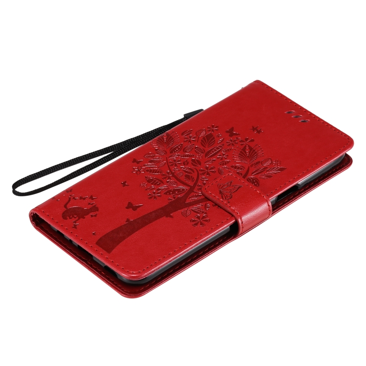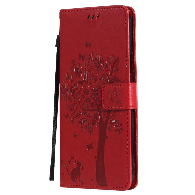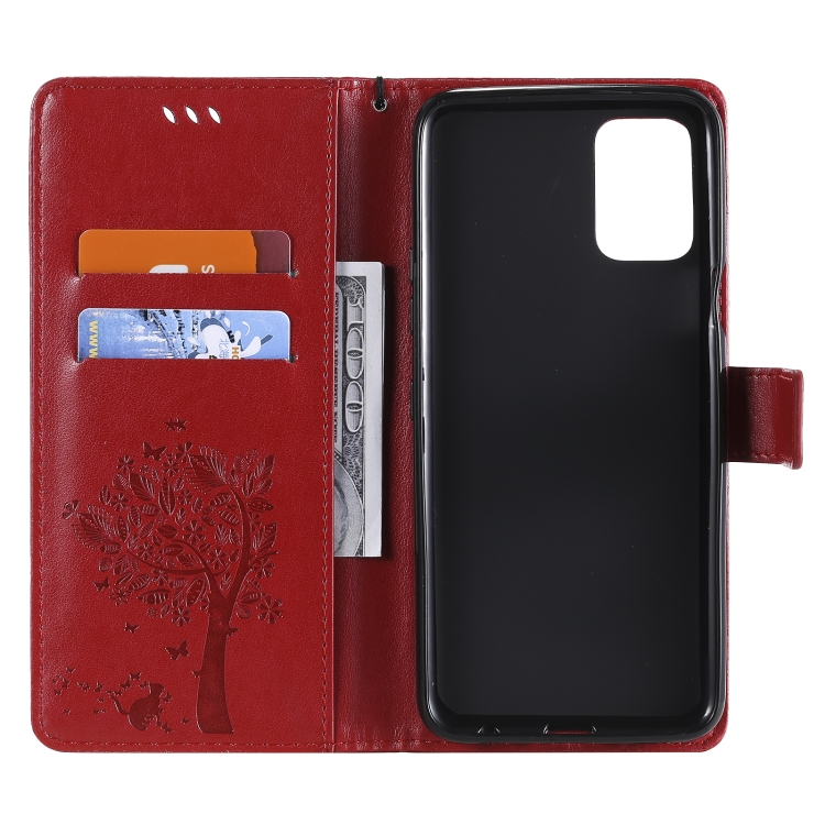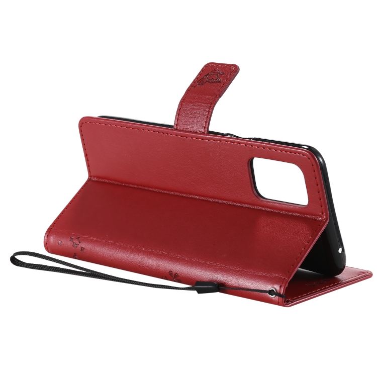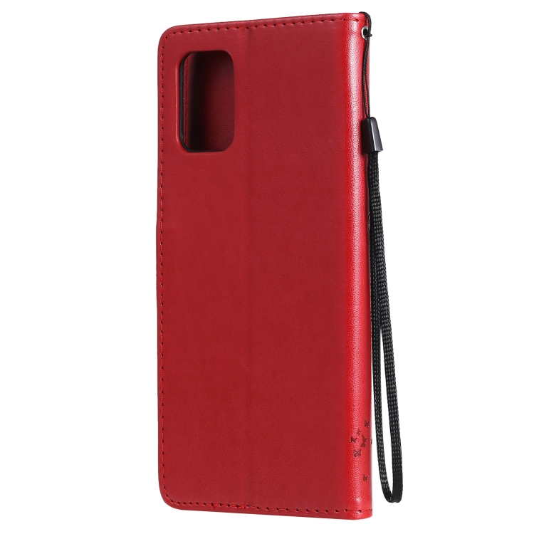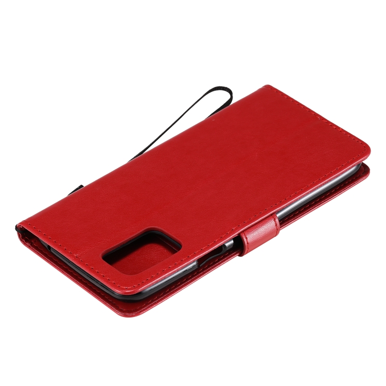 Funda Cuero PU para LG K52 con Soporte, Ranuras para Tarjetas y Cordón (Rojo)