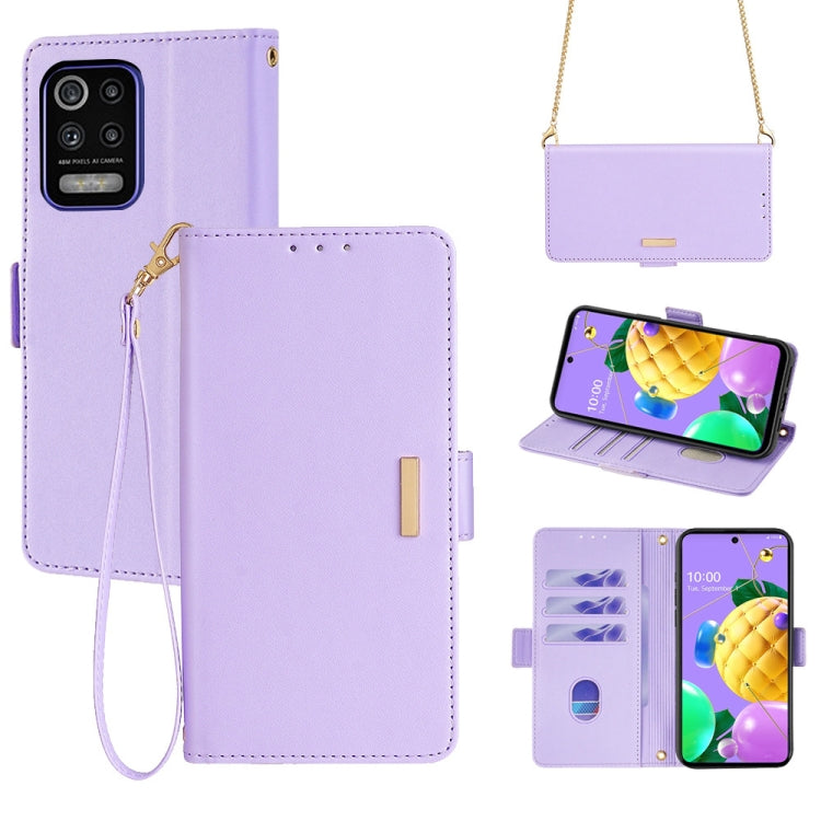 Funda de Cuero con Cadena Cruzada para LG K52 (Púrpura)