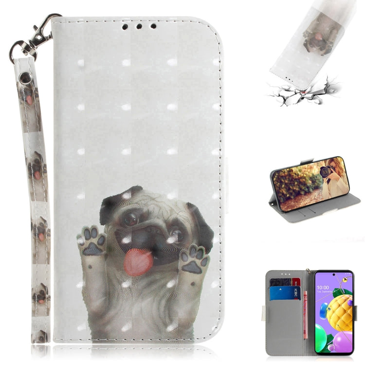 Funda de Cuero para LG K52 con Tapa Horizontal, Dibujo 3D, Soporte, Ranuras y Cordón (Pug)