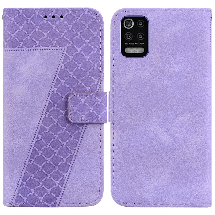 Estuche para Teléfono LG K52 K62 Q52 de Cuero en Relieve en Forma de 7 (Púrpura)