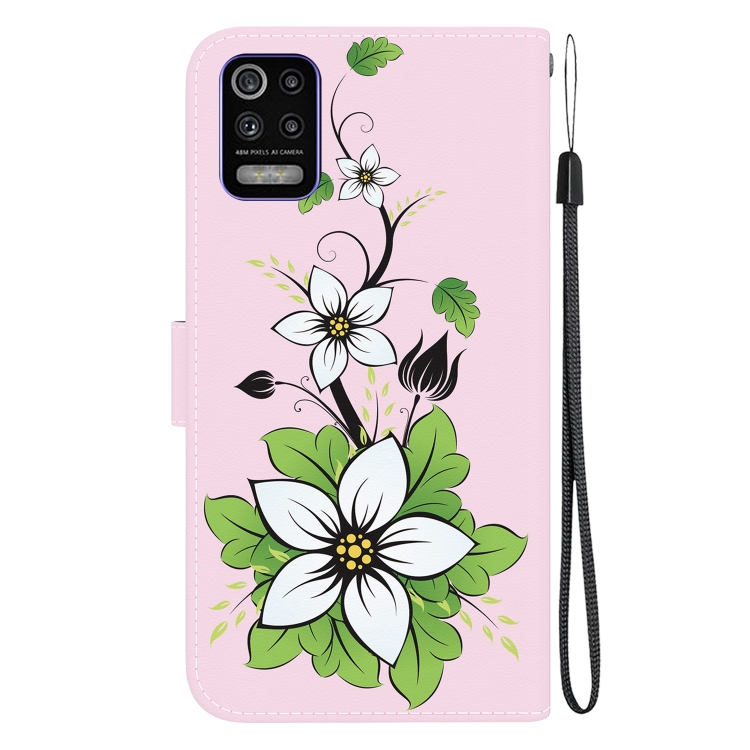 Funda de Cuero para LG K52 / K62 / Q52 con Dibujo Coloreado y Textura de Cristal (Lirio)