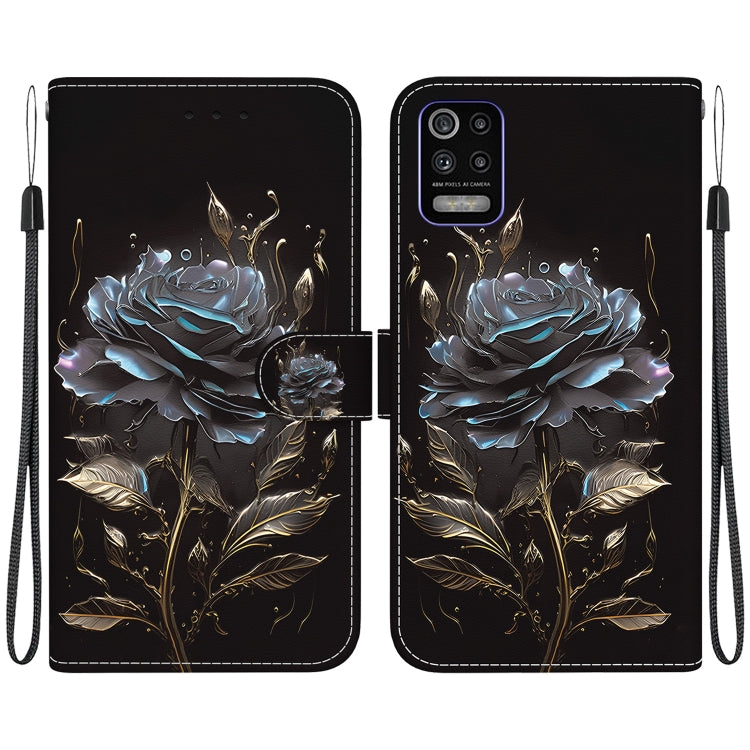 Funda de Cuero para LG K52 / K62 / Q52 con Dibujo Coloreado y Textura de Cristal (Rosa Negra)