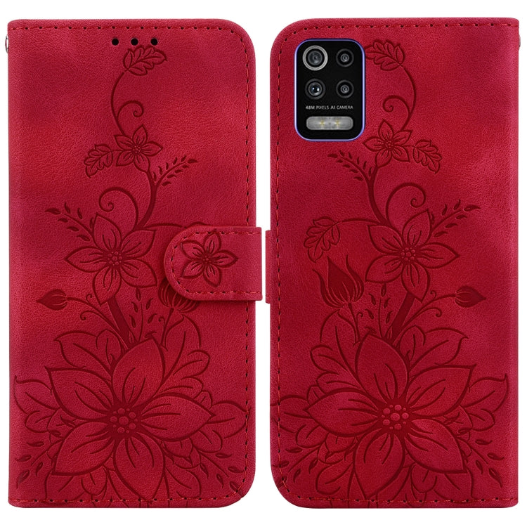 Funda para Teléfono LG K52 K62 Q52 Cuero con Relieve Lily (Rojo)