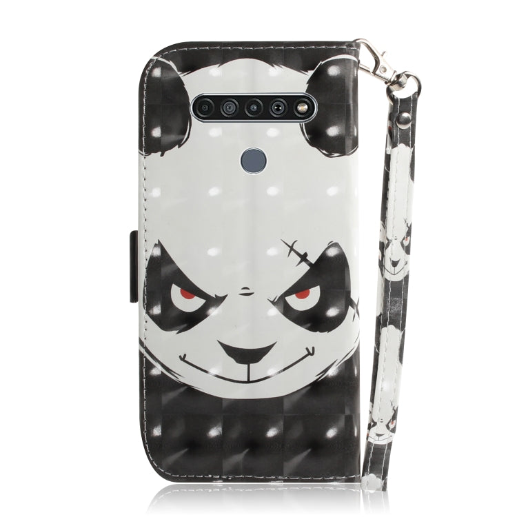Funda de Cuero Abatible Horizontal para LG K61 con Dibujo 3D, Soporte, Ranuras para Tarjetas y Cordón (Oso Enojado)