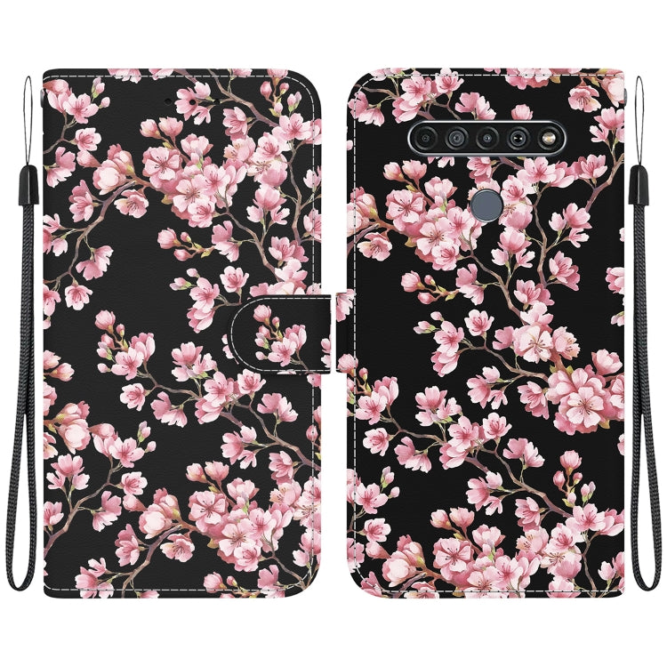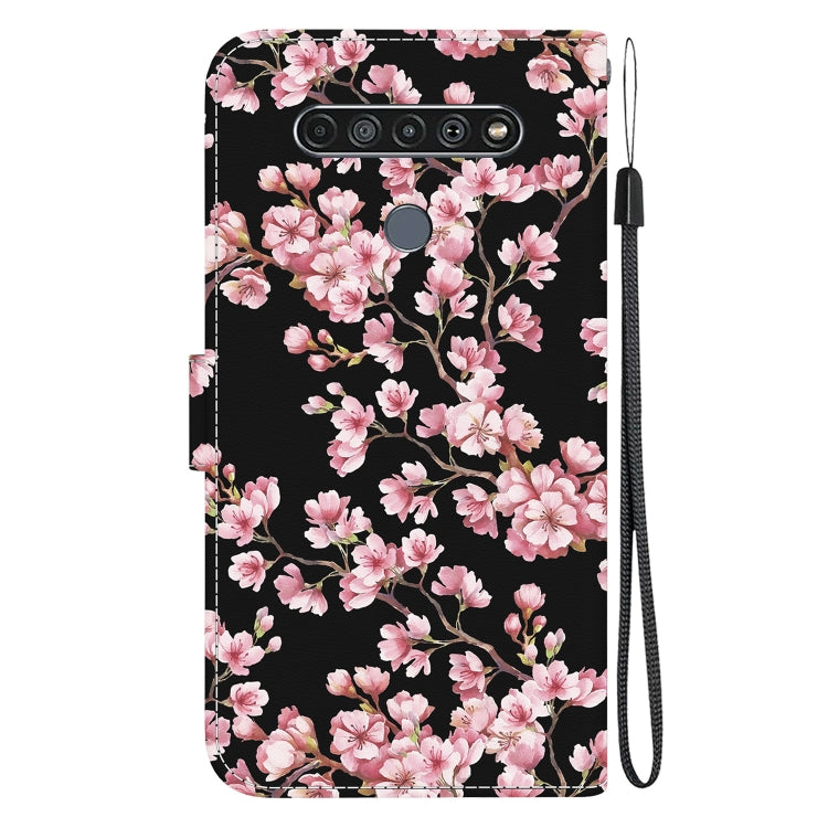 Funda para Teléfono LG K61 Cuero con Dibujo Coloreado y Textura de Cristal (Flor de Ciruelo)