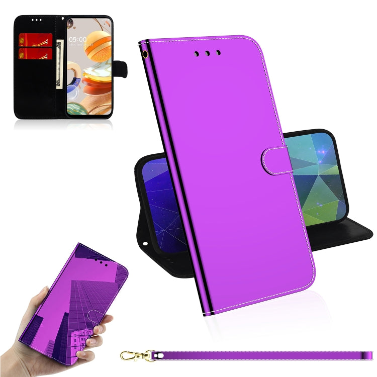 Funda de Cuero para LG K61 con Tapa Horizontal, Soporte, Ranuras para Tarjetas, Billetera y Cordón (Púrpura)