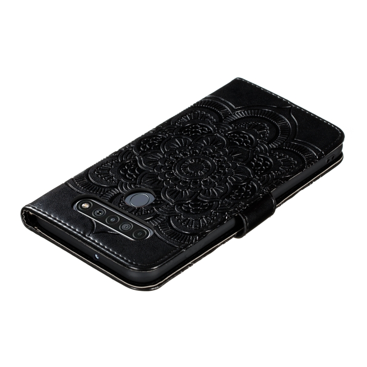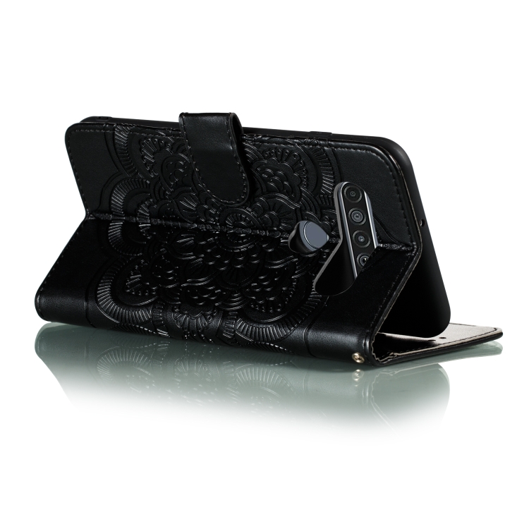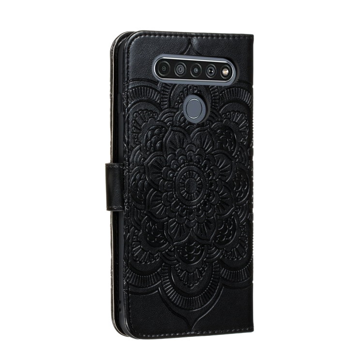 Funda Cuero Pu LG K61 Mandala con Tapa Horizontal, Soporte, Ranuras para Tarjetas y Cordón (Negro)
