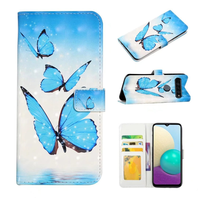 Funda para Teléfono LG K61S K51S Cuero con Dibujo 3D en Relieve al Óleo (3 Mariposas)