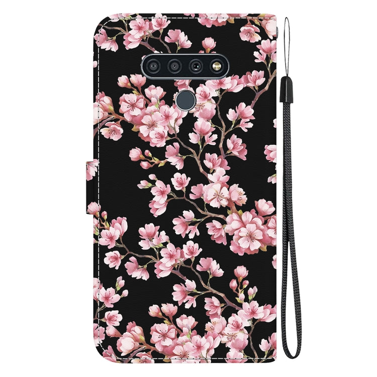 Estuche de Cuero para LG Stylo 6 / K71 con Dibujo Coloreado y Textura de Cristal (Flor de Ciruelo)