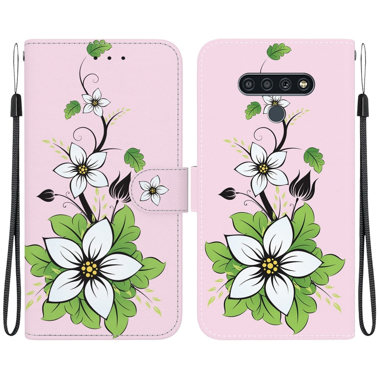 Funda para Teléfono LG Stylo 6 K71 de Cuero con Dibujo Coloreado y Textura de Cristal (Lirio)