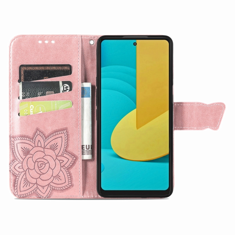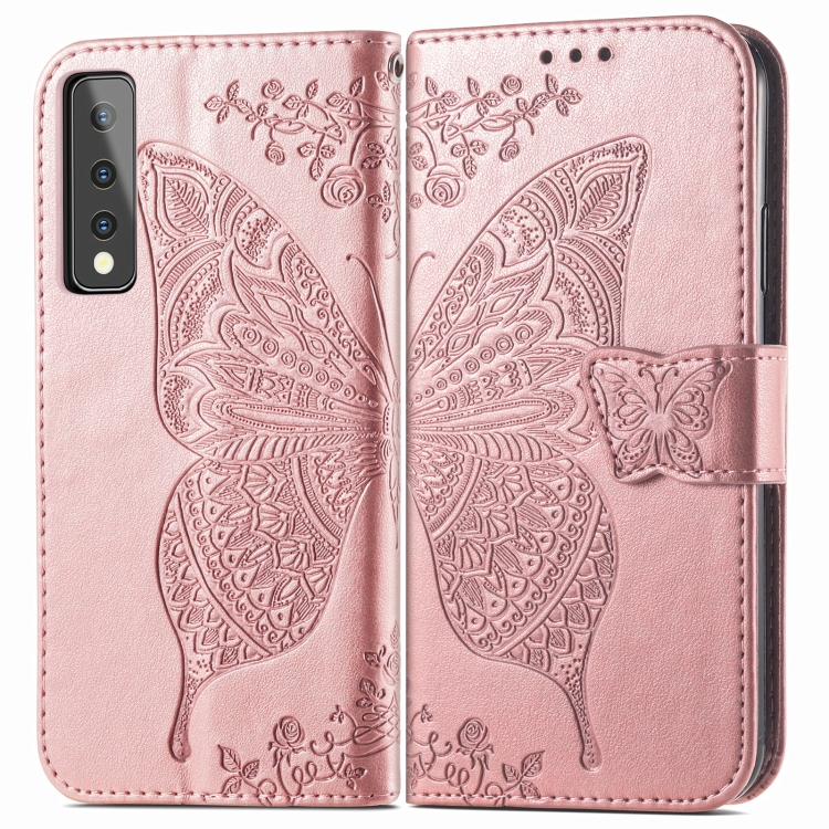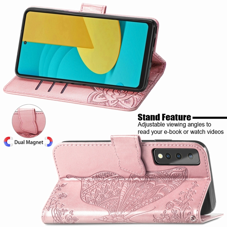 Funda de Cuero para LG Stylo 7 Butterfly Love Flowe con Soporte, Tarjeta Slot, Wallet y Lanyard (Oro Rosa)