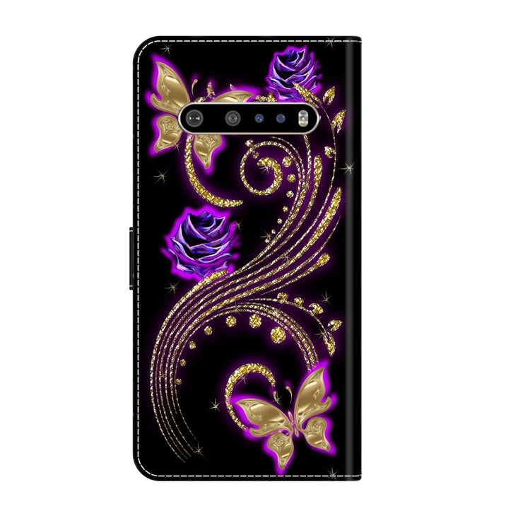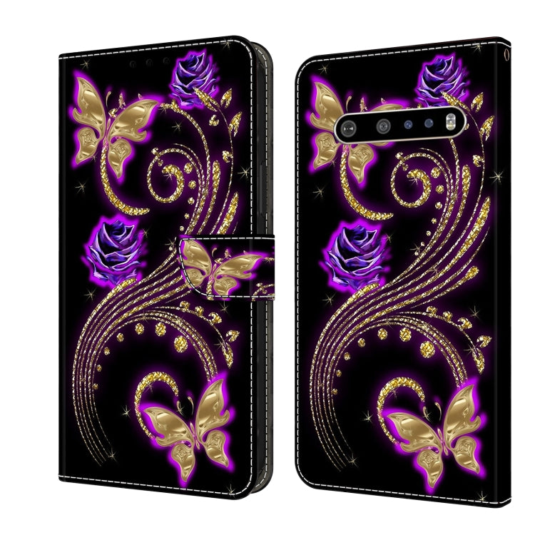 Funda Protectora de Cuero para LG V60 Thinq 5G Crystal 3D a Prueba de Golpes (Mariposa de Flor Púrpura)