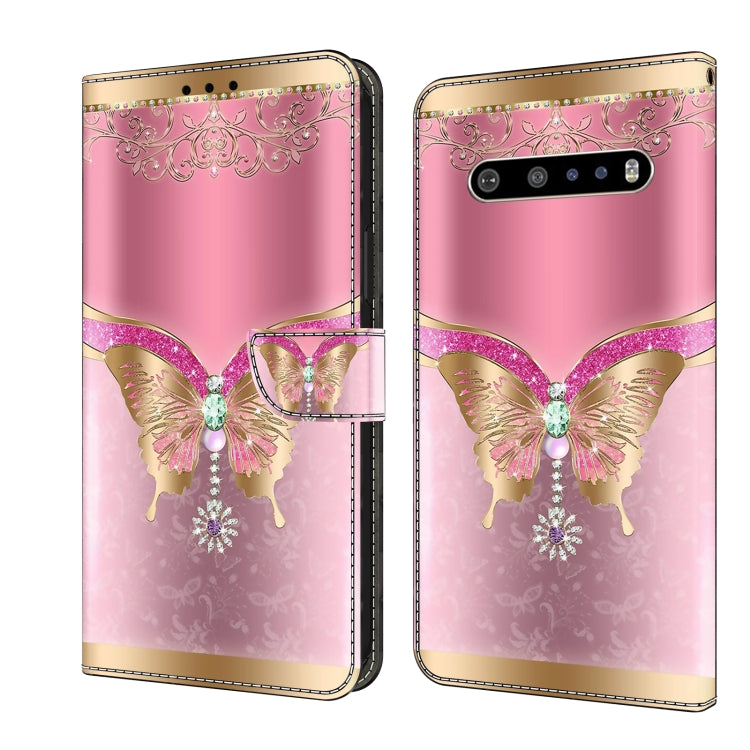 Funda protectora de cuero para LG V60 ThinQ 5G Crystal 3D a prueba de golpes (Mariposa Inferior Rosa)