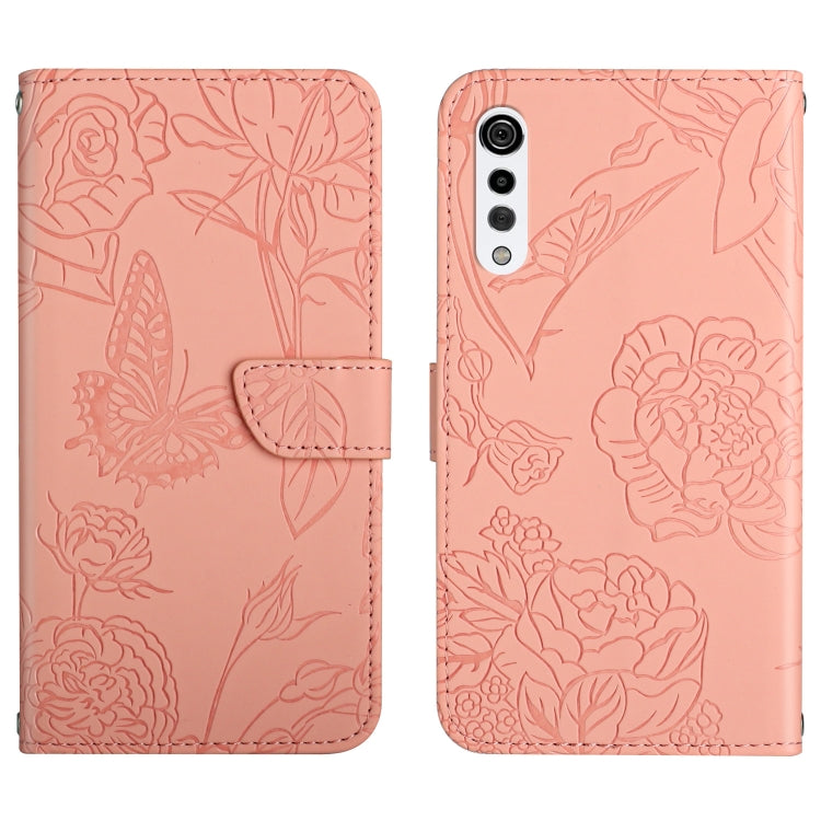 Funda de Cuero para LG Velvet 2 Pro con Relieve Peonía y Mariposa (Rosa)