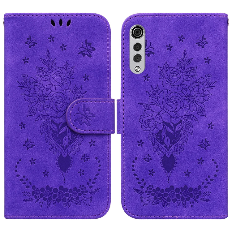 Funda de Cuero para LG Velvet G9 5G 4G Butterfly Rose Foothip en Relieve (Púrpura)