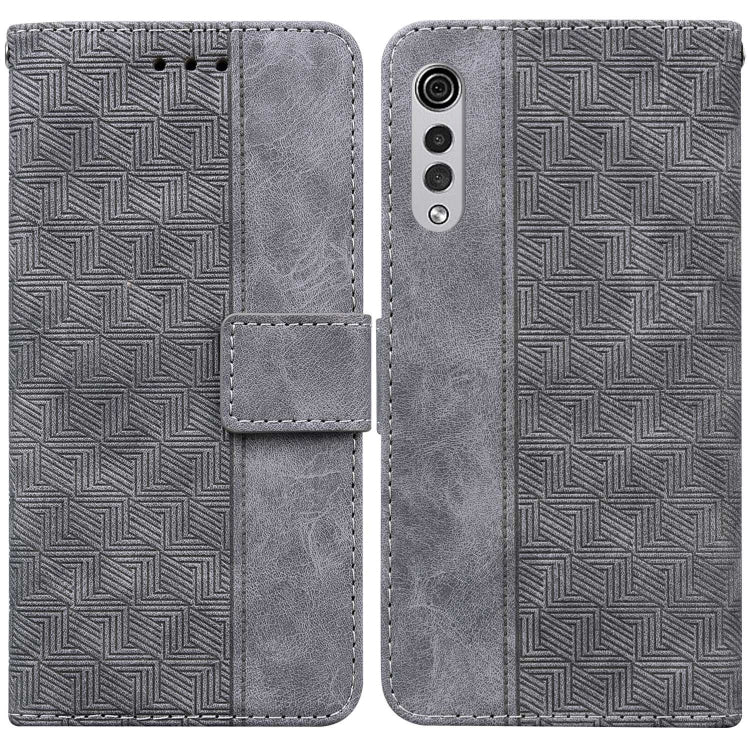 Caja de Cuero En Relieve Geométrico para LG Velvet / G9 5G / 4G (Gris)