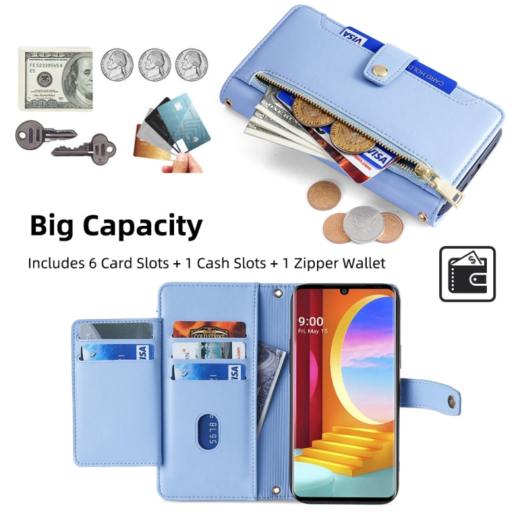 Funda de Cuero para Teléfono LG Velvet Sheep Texture Cross-Body Zipper Wallet (Azul)
