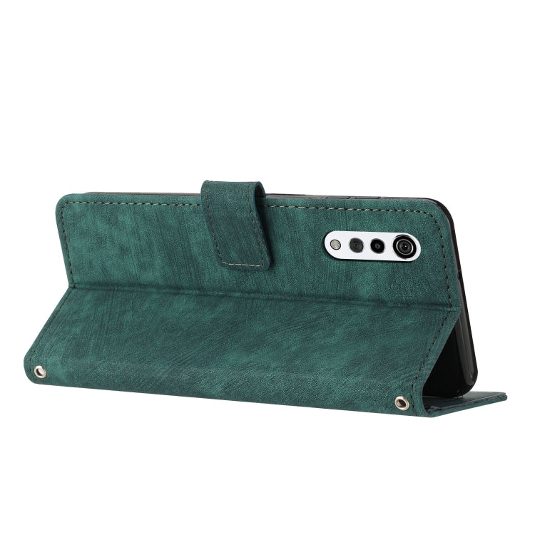Funda de Cuero para LG Velvet y Velvet 5G con Cordón y Patrón Stripe (Verde)