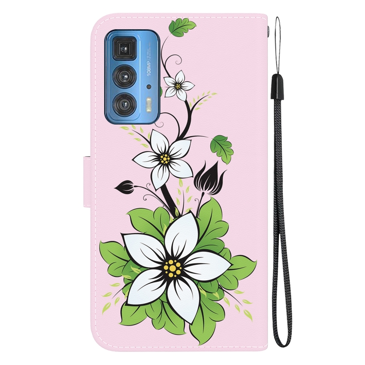 Funda de Cuero para Motorola Edge 20 Pro con Dibujo Coloreado y Textura de Cristal (Lirio)