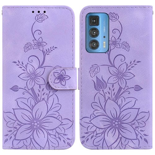 Funda de Cuero en Relieve para Motorola Edge 20 Pro Lily (Púrpura)