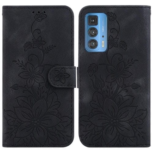 Funda de Cuero para Motorola Edge 20 Pro Lily en Relieve (Negro)