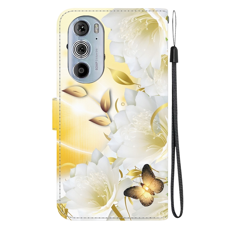 Estuche de Cuero para Motorola Edge + (2022) con Dibujo Coloreado y Textura de Cristal (Epiphyllum de Mariposa Dorada)