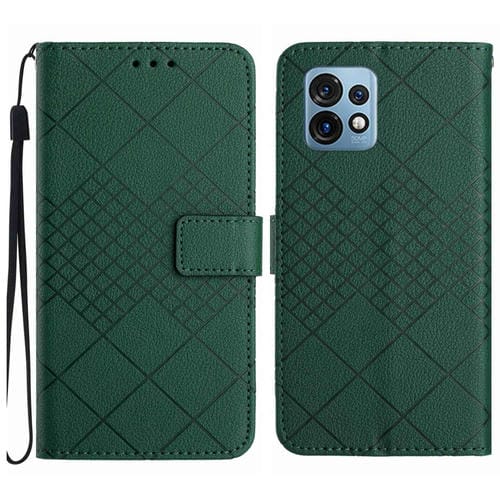 Funda de Cuero para Motorola Edge + 2023 y Edge 40 Pro con Textura de Rejilla Rómbica (Verde)