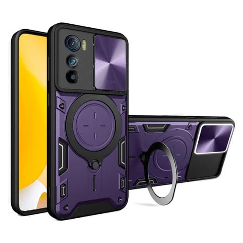 • 1x Funda Motorola Edge 30 Cd Textura Deslizante Camshield Soporte Magnético (Púrpura)