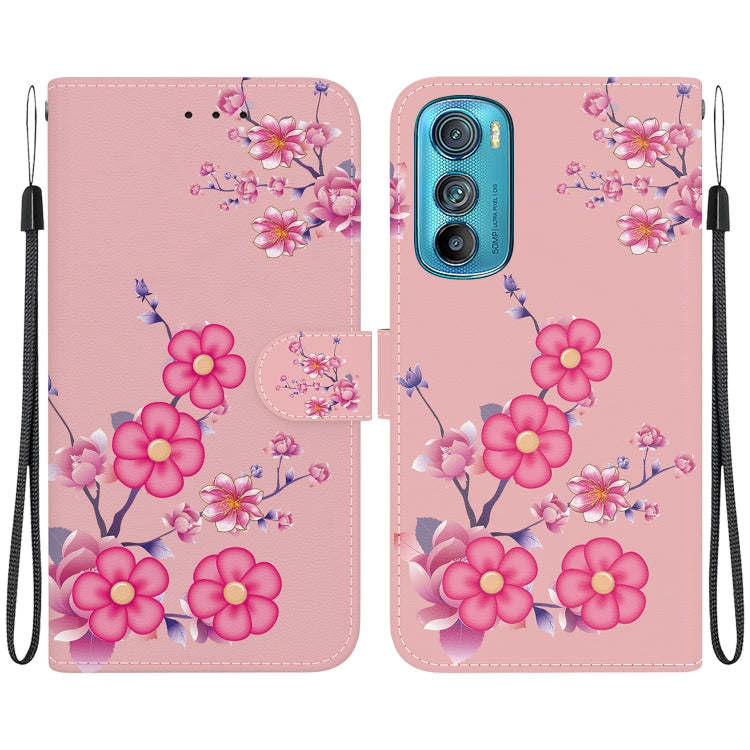 Estuche para Motorola Edge 30 de Cuero con Dibujo Coloreado y Textura de Cristal (Flores de Cerezo)