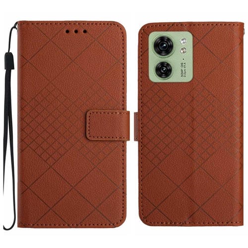 Funda de Cuero para Motorola Edge 40 con Textura de Rejilla Rómbica (Marrón)