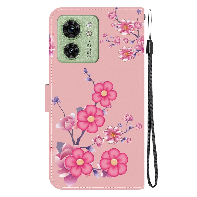 Funda de Cuero para Motorola Edge 40 con Dibujo Coloreado y Textura de Cristal (Flores de Cerezo)