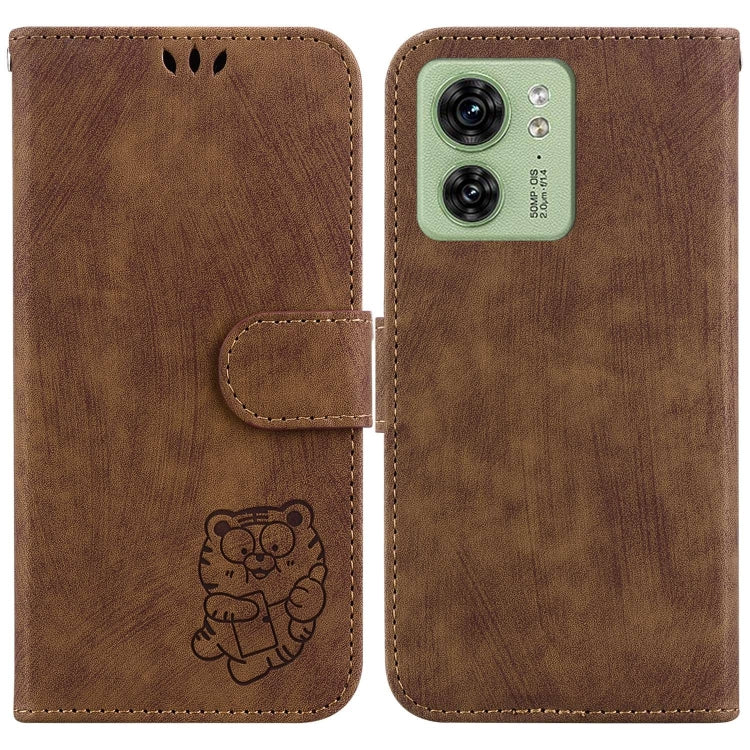 Funda de Cuero con Relieve Little Tiger para Motorola Edge 40 (Marrón)