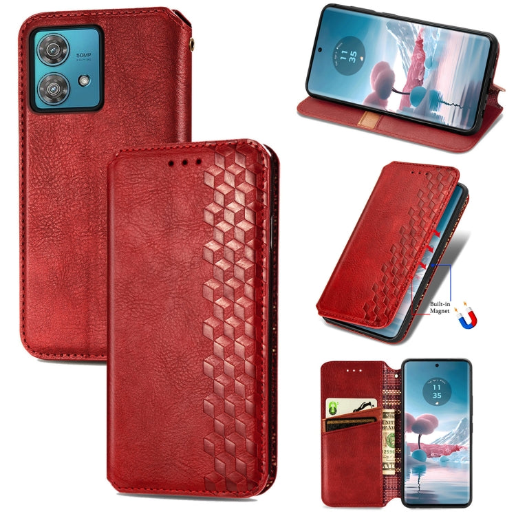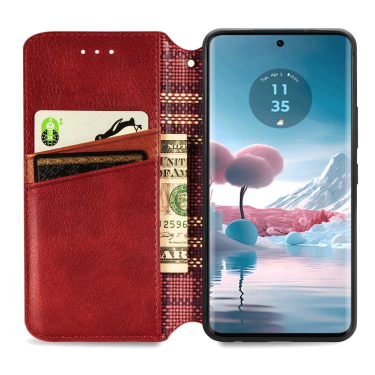Funda de Cuero Magnético Prensado Cubic Grid para Motorola Edge 40 Neo (Rojo)