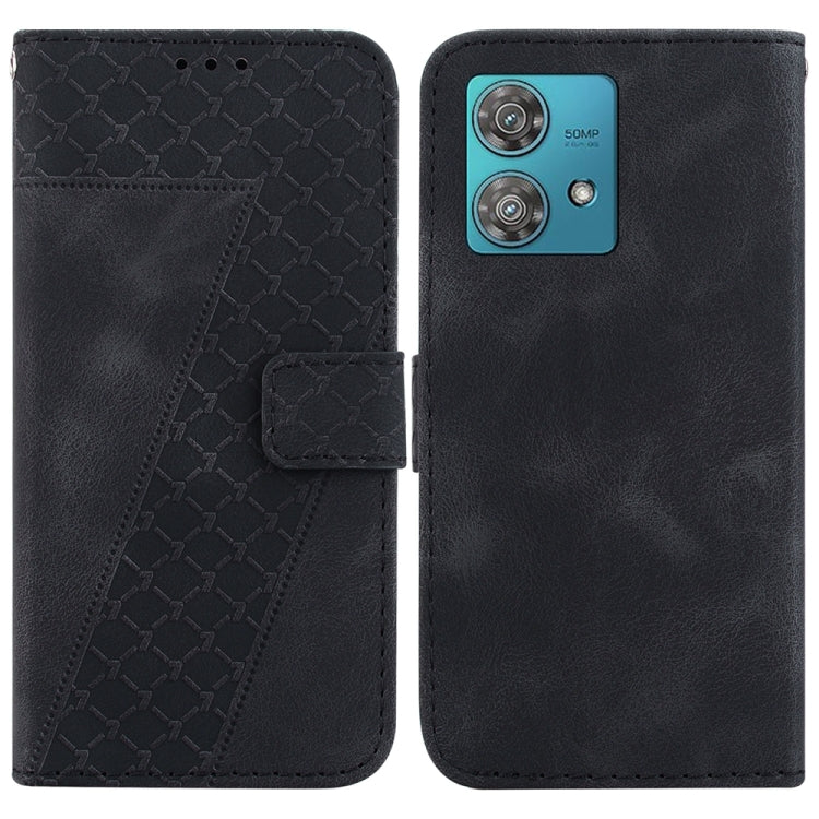 Funda de Cuero para Motorola Edge 40 Neo con Relieve en Forma de 7 (Negro)