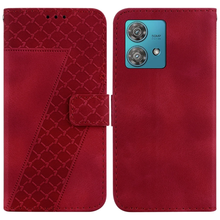Funda de Cuero para Motorola Edge 40 Neo con Relieve en Forma de 7 (Rojo)