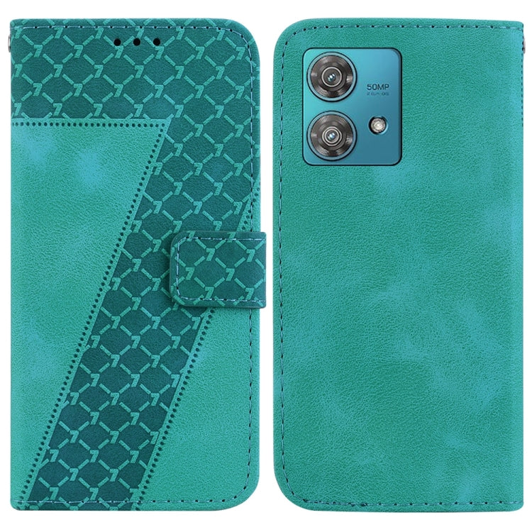 Funda de Cuero para Motorola Edge 40 Neo con Relieve en Forma de 7 (Verde)