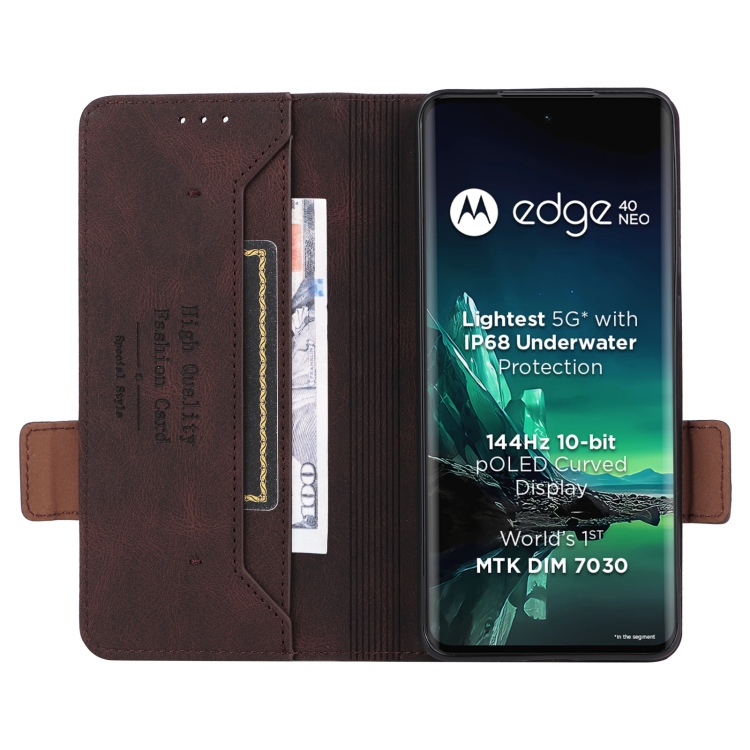 Funda de Cuero para Motorola Edge 40 Neo con Cierre Magnético (Marrón)