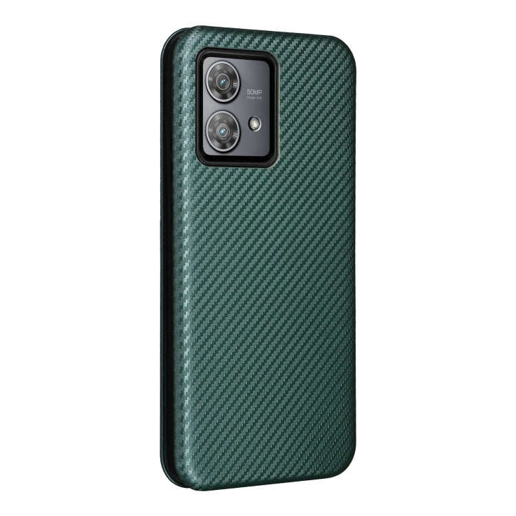 Funda de Cuero para Motorola Edge 40 Neo con Tapa y Textura de Fibra de Carbono (Verde)