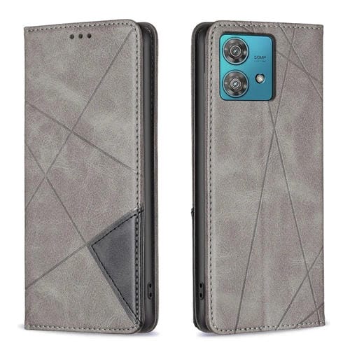 - 1x Funda de Teléfono Motorola Edge 40 Neo Cuero Magnético Textura Rombo (Gris)