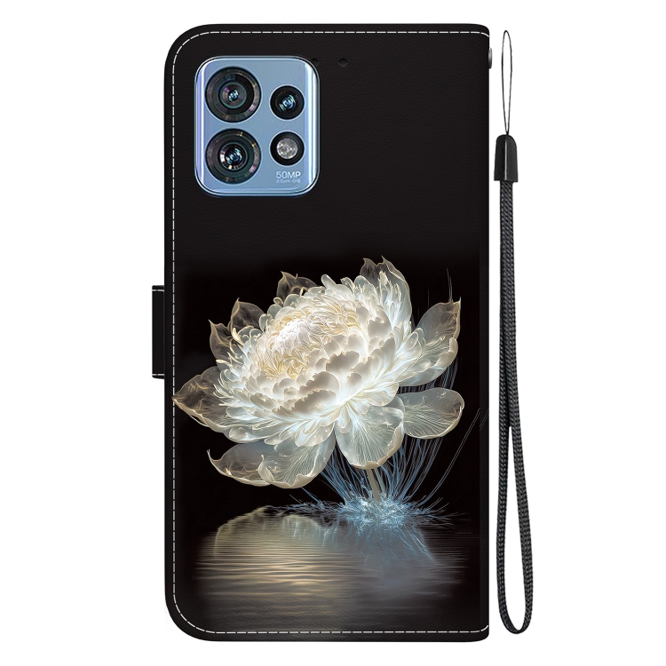 Funda de Cuero para Motorola Edge 40 Pro con Dibujo Coloreado y Textura de Cristal (Peonía de Cristal)