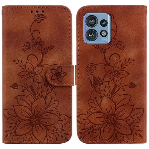 Funda de Cuero para Motorola Edge 40 Pro Lily en Relieve (Marrón)
