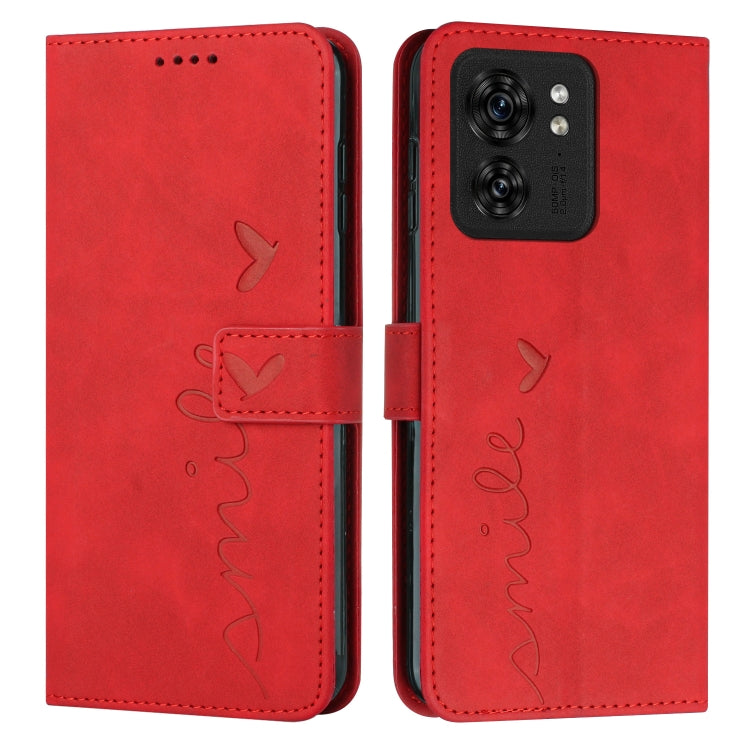 Funda de Cuero para Motorola Edge 40 Skin Feel con Patrón de Corazón (Rojo)