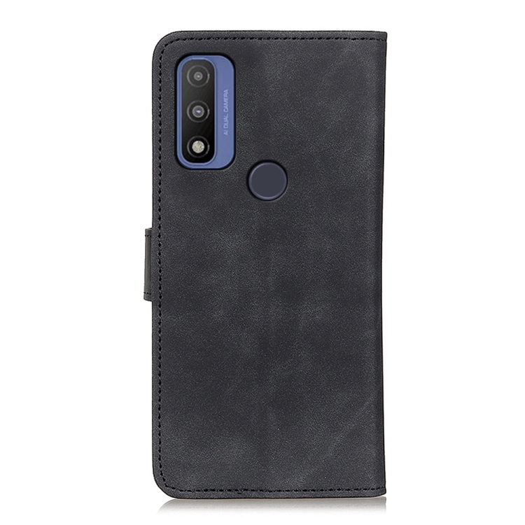 Funda Cuero Horizontal para Motorola G Pure Khazneh con Soporte Billetera y Tragamonedas (Negro)