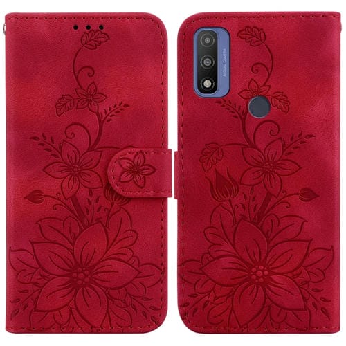Funda de Cuero en Relieve para Motorola G Pure Lily para Teléfono (Rojo)