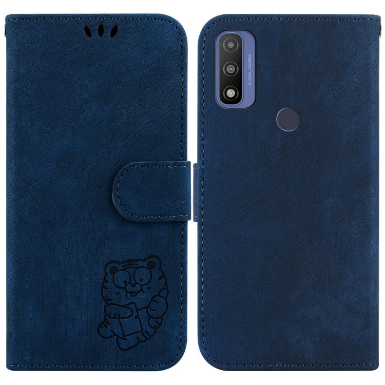 Funda de Cuero en Relieve para Motorola G Pure Little Tiger para Teléfono (Azul Oscuro)