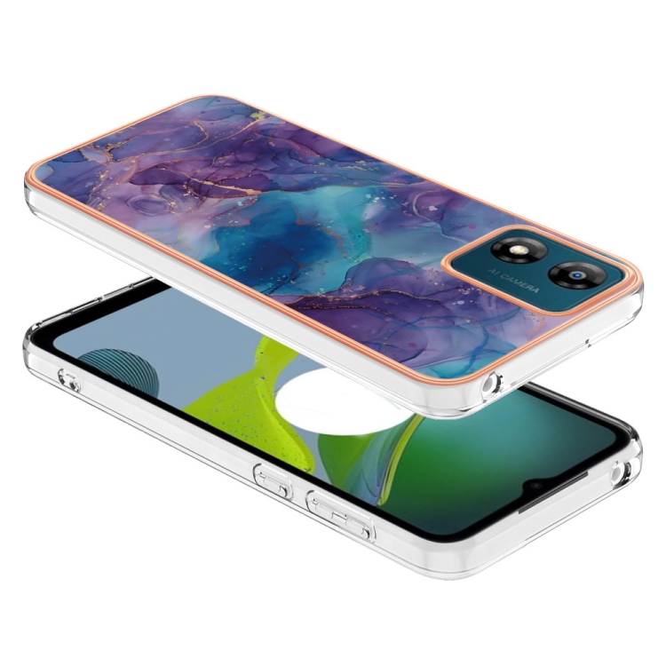 Caja de Teléfono para Motorola Moto E13 Imd Doble Cara Mármol Galvanizado (Púrpura)