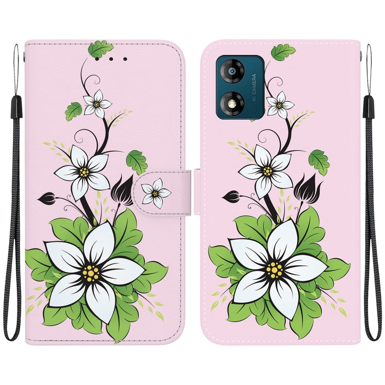Funda de Cuero para Motorola Moto E13 con Dibujo Coloreado y Textura de Cristal (Lirio)