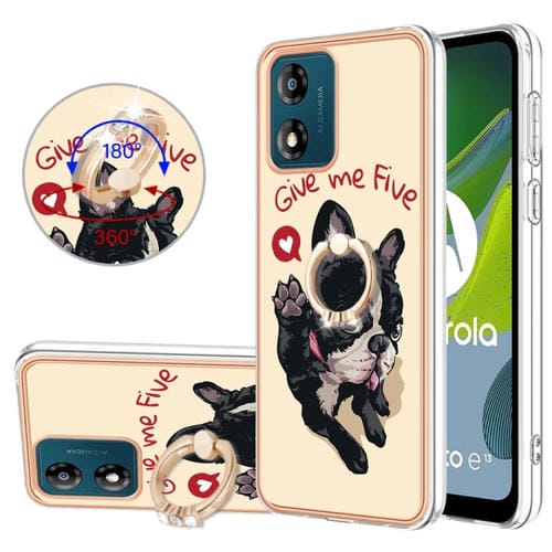 - 1x Funda para Motorola Moto E13 Galvanoplastia IMD Doble Cara con Soporte para Anillo (Perro de la Suerte)
