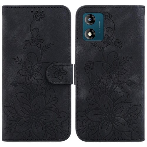 Funda de Cuero para Motorola Moto E13 Lily en Relieve (Negro)
