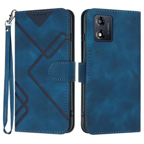Funda de Cuero para Motorola Moto E13 con Textura Line Pattern para Teléfono (Azul Real)